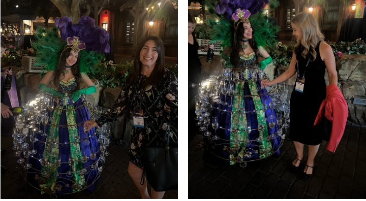 Heather Stohler (left photo) and Nicole Hoplin (right photo) enjoy New Orleans culture, music, and food during an event showcasing Louisiana and sponsored by the Pelican Institute for Public Policy